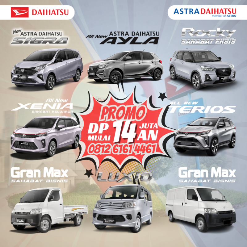 Hallo sahabat Astra Daihatsu Padang yang sedang mencari info tentang mobil Daihatsu di Sumatera Barat, baik tentang info promo, harga, test drive dan lain-lain. Dapatkan promo menarik diskon hingga puluhan juta dan harga paling murah. Kami menerima tukar tambah unit mobil lama dengan mobil baru. Pembelian mobil Daihatsu bisa dari rumah dengan saya bisa menghubungi saya pada Khairul nomor kontak 081261614461. Bonus aksesoris dan hadiah untuk program khusus pembelian mobil daihatsu di sini.